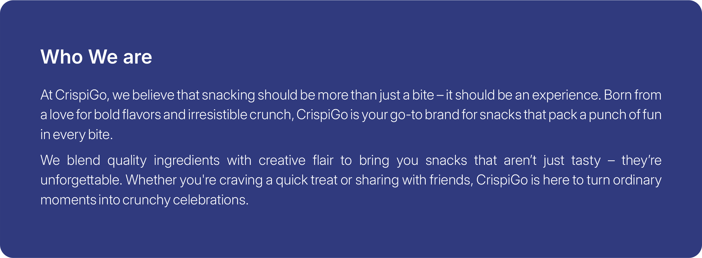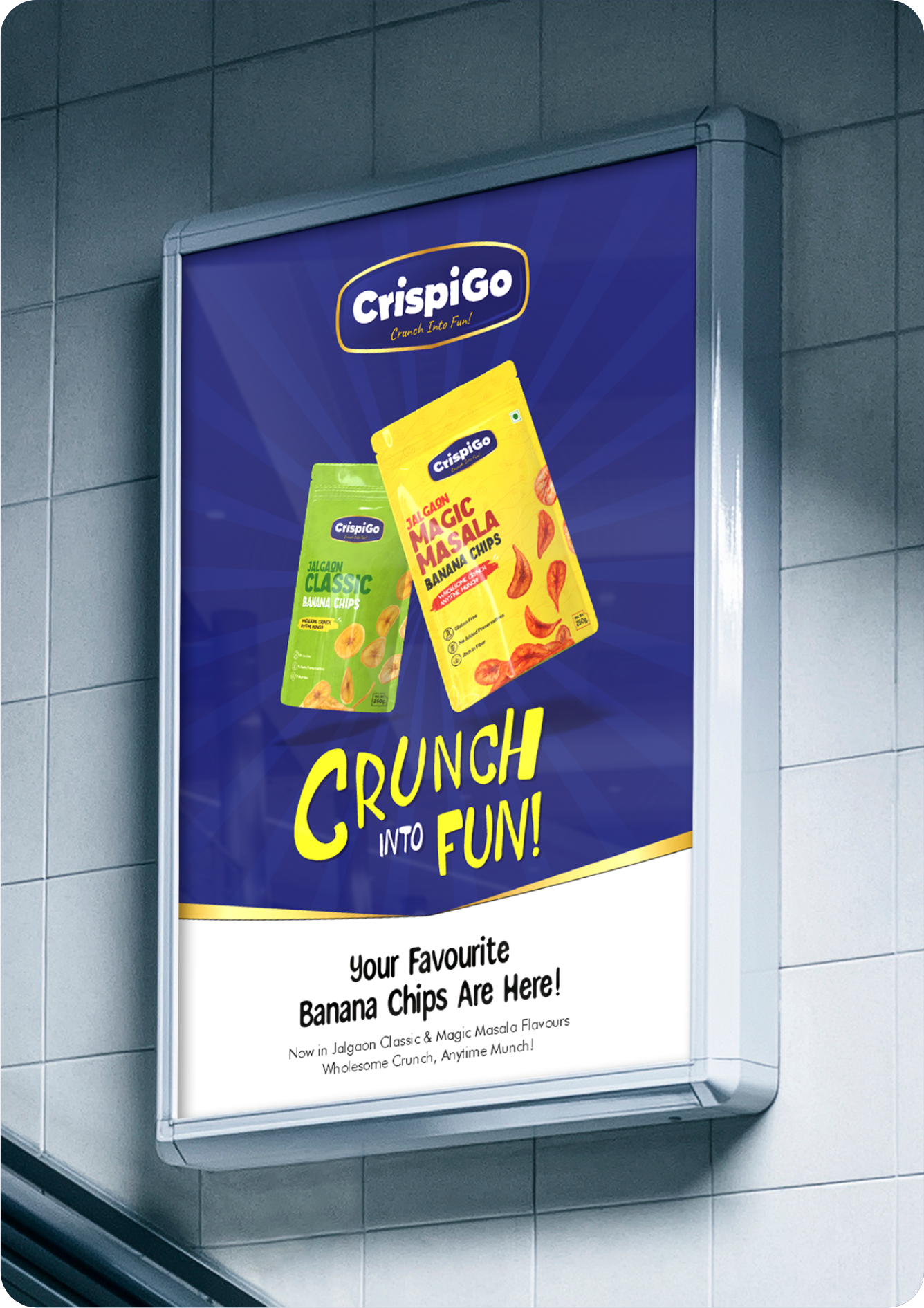 Crispigo launched with a strong market presence, supported by a brand identity that was instantly recognizable. The packaging design added shelf appeal, boosting customer curiosity and driving purchase decisions.